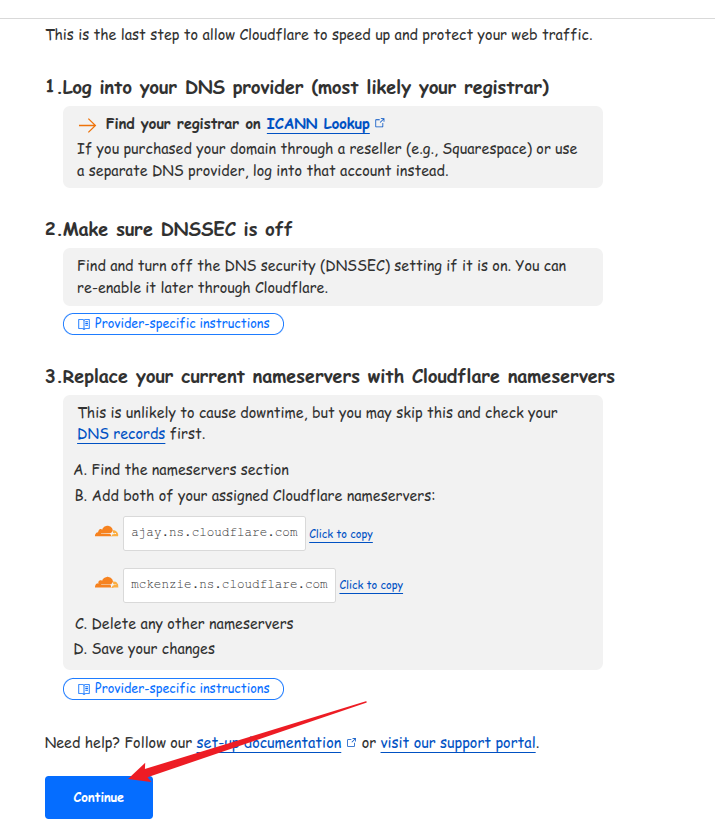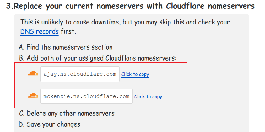 之后再回到 cloudflare 的界面,检查一下域名服务器: