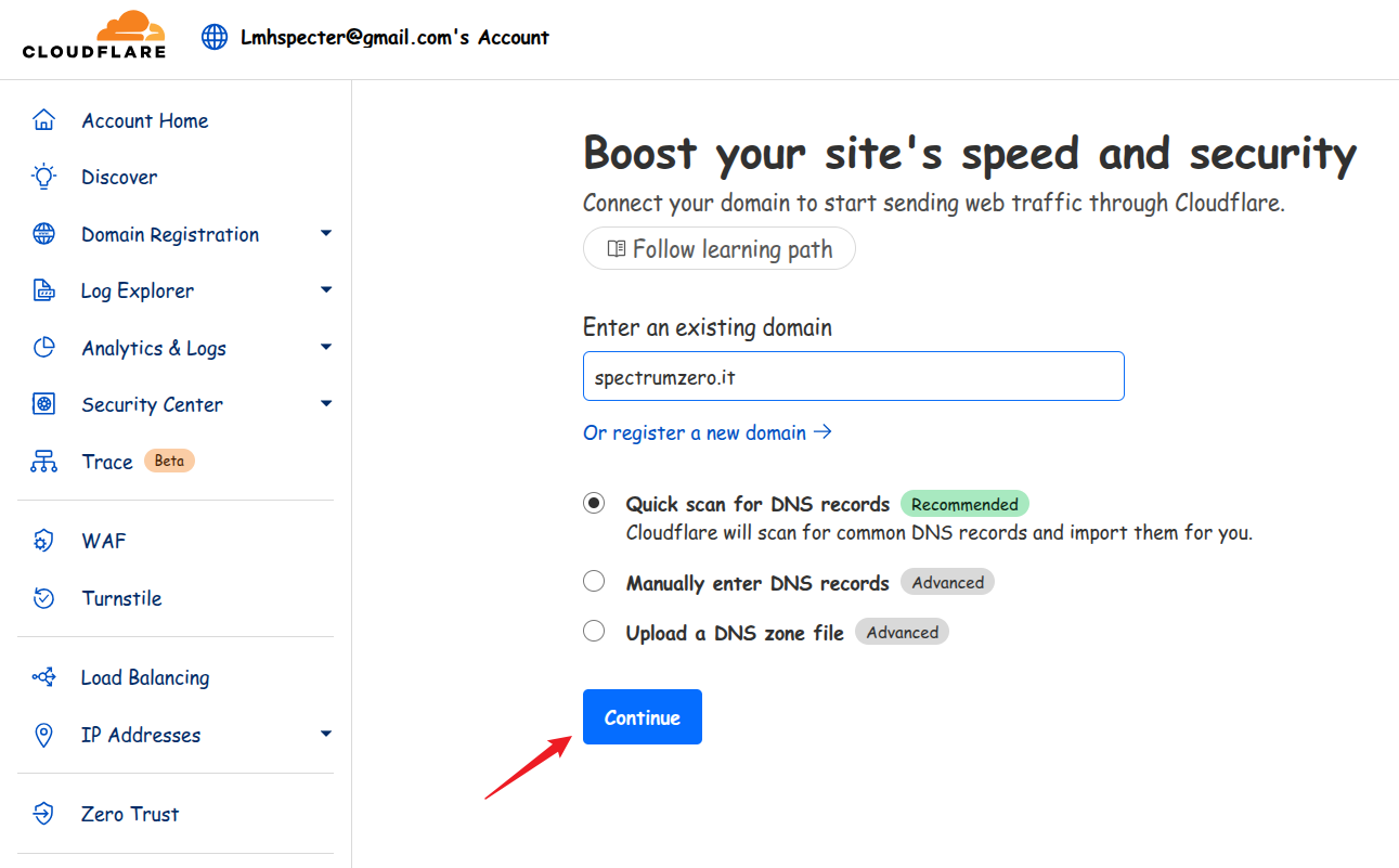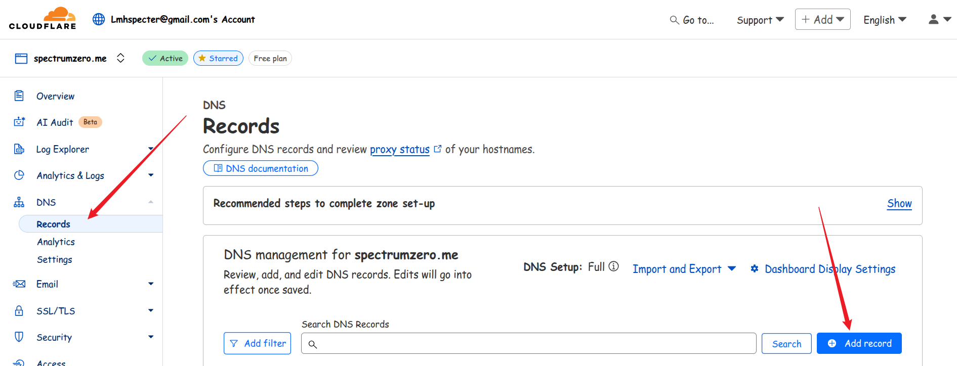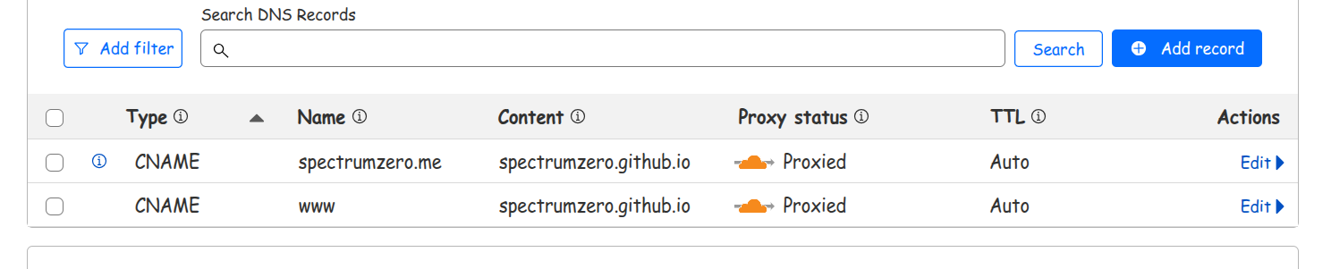 第一次:CNAME->www->spectrumzero.github.io->proxied->Auto