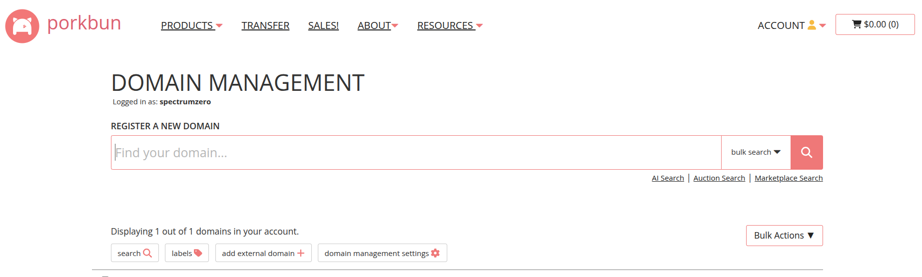 有很多地方可以买到域名。我个人比较推荐的是porkbun,因为你可以看到下一年续费需要多少钱,这个方面是比较透明的。而且也比其他商家比如 Namecheap 便宜,当然,也没有备案的说法。还有,如果你办理了GitHub Student Developer Pack,那么 Namecheap 好像可以免费提供域名^2(可惜我当时没有看到)。porkbun 支持 alipay,其他的商家可能不支持,但即便不支持,你或许也可以谷歌一下 wildcard。