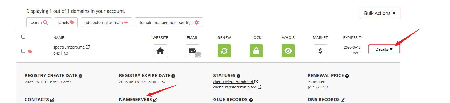 details,并关注NAMESERVERS选项,因为后面会用到:![]()